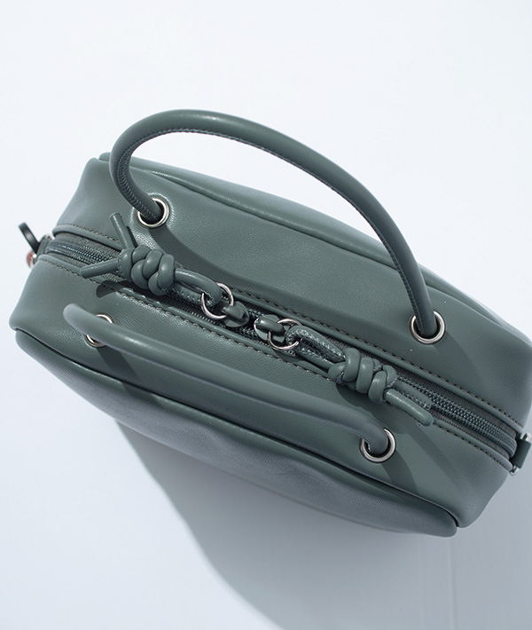 100%アニマルフリーのエコテックレザーを使用したボストン型のスクエアショルダーバッグ。このエコテックレザーは、柔らかくて軽く、汚れにくいというハイブリッドな素材で、モダンな印象に仕上げたスクエア型が特徴的なデザイン。ボストンタイプでハンドルが装備されており、ショルダーと2wayで使用可能です。