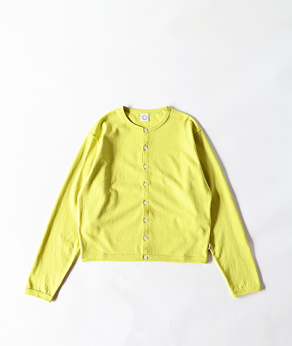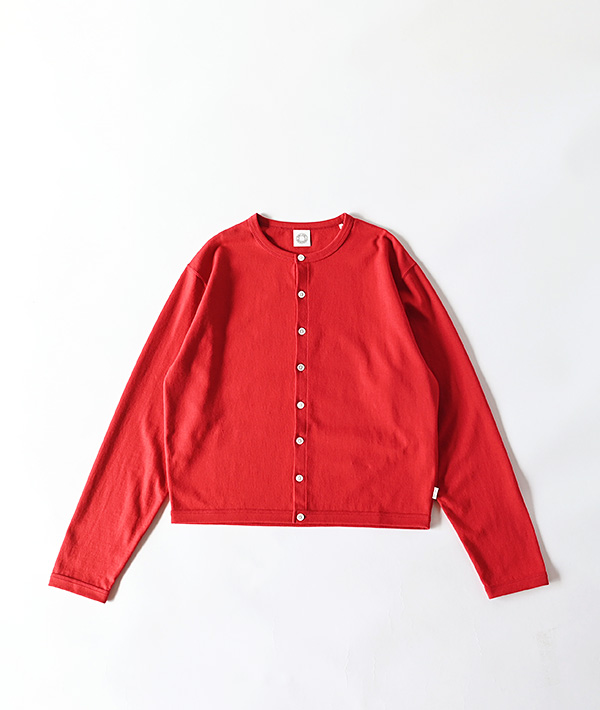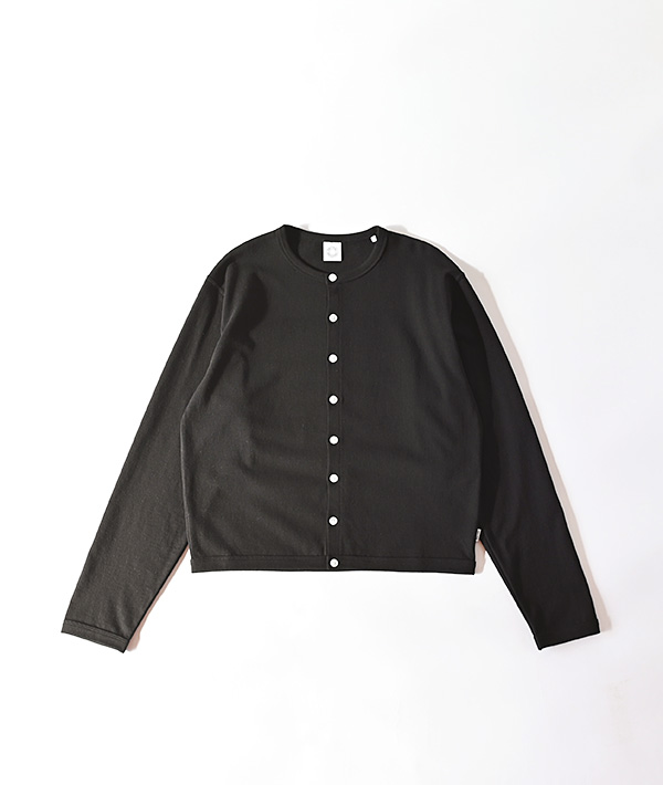 世界三大綿花のひとつのスーピマ原料を使用した天竺素材の長袖クルーネックカーディガン。程よいジャストサイズのショート丈でスッキリとした印象に仕上げています。