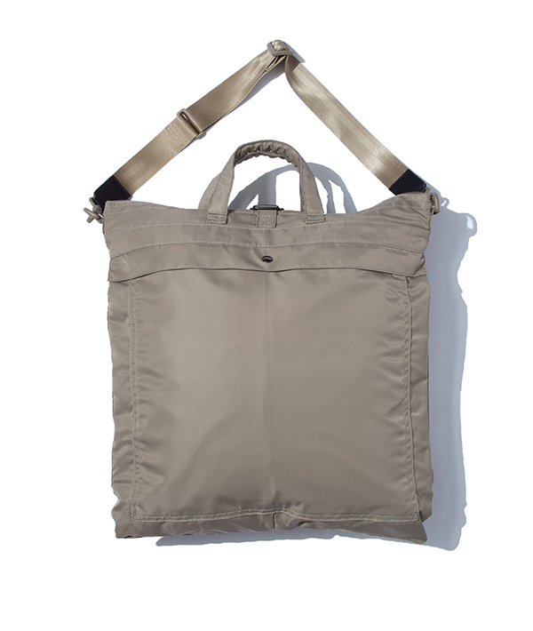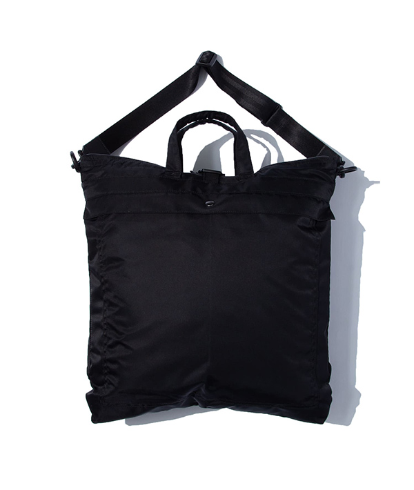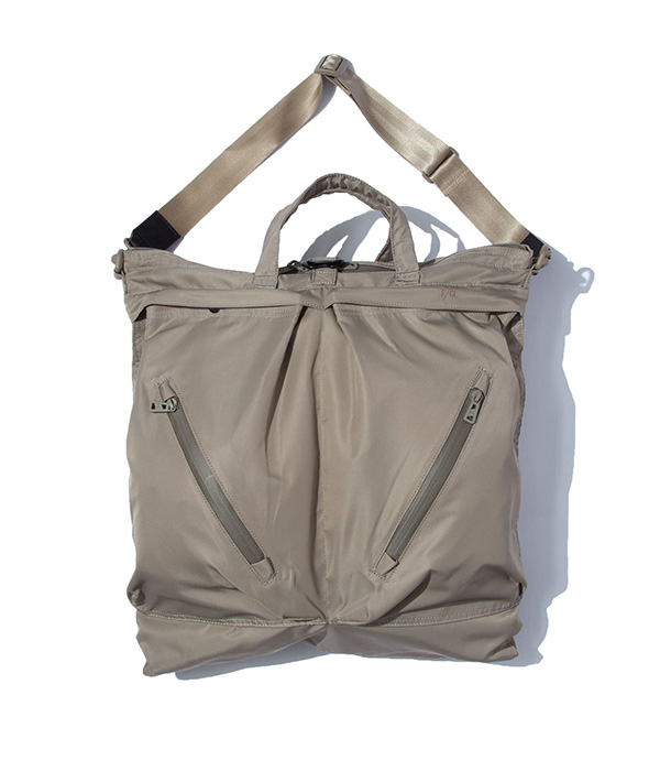 やや小ぶりなサイズ感で作成された、ヘルメットバッグ。ポーチ的な使用が可能なユニセックスモデルです。