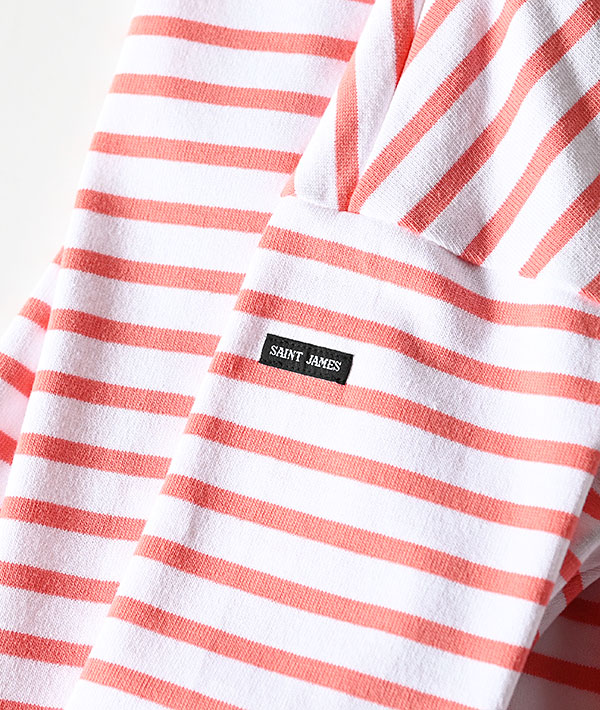 SAINT JAMES (セントジェームス) OUESSANT LOOSE ドロップショルダー ロングスリーブ ホワイト×コーラルピンク【MENS&WOMENS】
