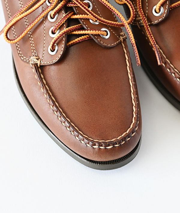 1936年以来ロングセラーのブルーチャーモック。アッパーは柔軟性のあるフルグレインレザーを使用。伝統的なハンドソーンの合わせモカ縫いで仕上げています。履くほどに足に馴染んでいく快適な履き心地をお楽しみいただけます。