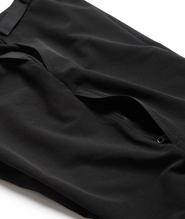 膝下から程よくテーパードが掛かったPOUTNIK定番のシンプルなストレッチパンツ。通気性と撥水性、速乾性を備え、4方向にストレッチする4シーズン対応素材。耐久性も高く、野外アクティビティーもストレスフリーなナイロンパンツ。フロントポケットが2つ、ヒップジップポケットが2つ、また右サイドにサイドジップポケットが1つ。ガゼットクロッチを備え、ヒップや膝部分のカッティングは立体縫製を施しています。