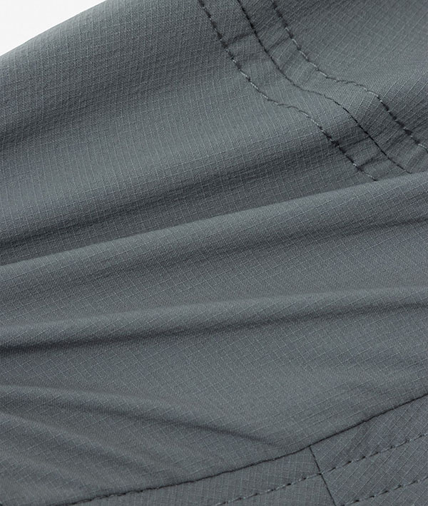 軽快な被り心地でコンパクトに携行もできるハット。素材には、ストレッチナイロンのリップストップ生地を採用し、適度なハリ感で軽くて快適な被り心地。ツバには、やわらかく折り曲げてもクセがつきにくい素材を採用することで、コンパクトにまとめることができます。本体前後にはベンチレーションを備え、ヘッドウエア内のムレ感を軽減。被ると快適で、収納してもコンパクトなため、ロングディスタンスハイキングから登山まで活躍する軽量なヘッドウエアです。
