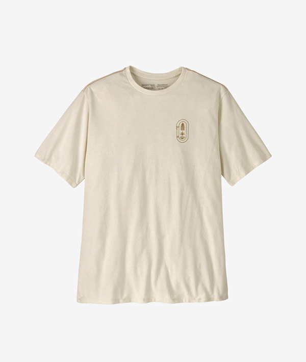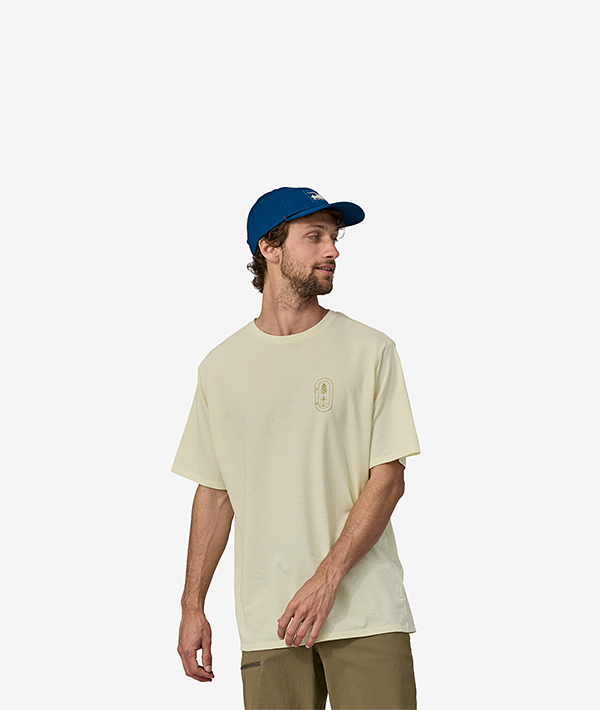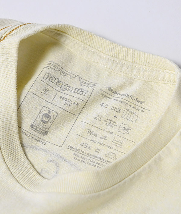 リサイクル素材を100%使用し、パタゴニア製品の中で最もカーボンフットプリントを抑えたTシャツ。