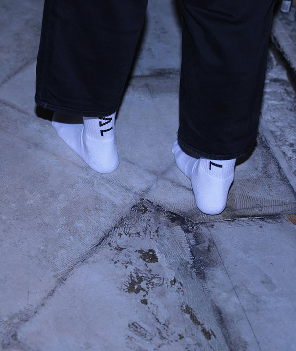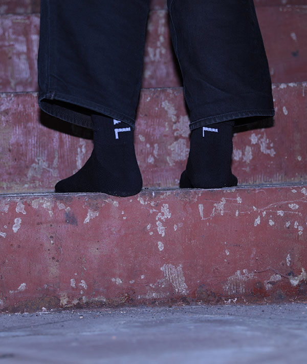「NODAL」のロゴを背面に施したアイコニックなソックス。ミドルゲージで編みたて、足底はパイル編みなのでクッション性があり、程良い厚みとなっております。甲にサポートゴムを入れることでより足にフィットしやすい設計です。素材は綿とアクリルを混紡した糸に抗菌防臭加工を施しています。