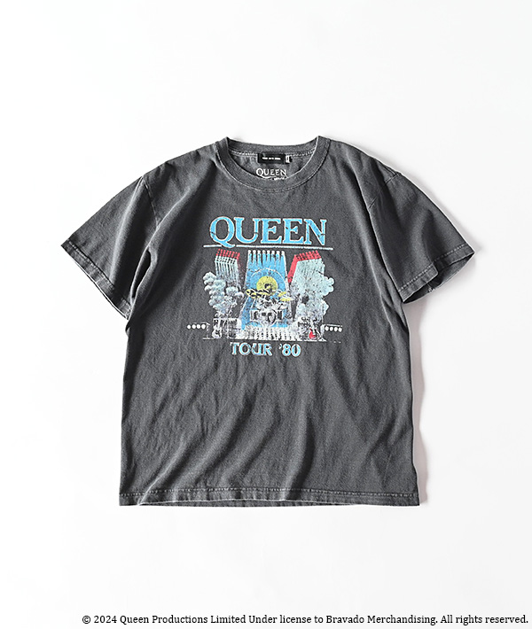 QUEEN 80'sのツアーTシャツのグラフィックをプリント。ピグメント加工により、ヴィンテージ感を味わえる仕上がりの1枚です。