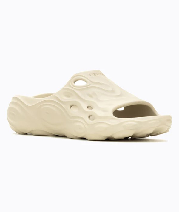 遊び心に溢れながらも機能性を重視したフォルムを用い、多様な環境に対応する象徴的なシューズデザインを体現してきたMERRELL。アッパーフォルムのコンセプトは「Water Flowing over Rocks (岩の上を流れる水の動き)」をイメージ。アッパー素材には藻類バイオマスから生成されたサステナブル素材「BLOOM」フォームを採用。スライド仕様で着脱もスムーズです。