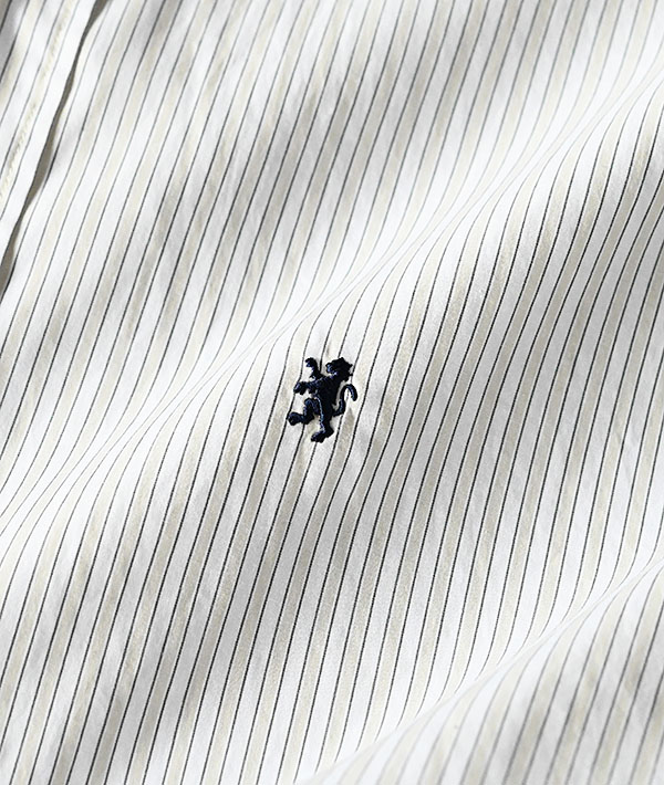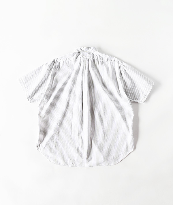 滑らかなコットン素材のストライプ柄ボタンダウンシャツ。ドロップショルダーにリラックス感ある、ゆとりあるシルエット。ストライプにホワイト、グレー、チャコールを使い、織り柄とストライプを組み合わせたクラシックな清涼感を演出しています。