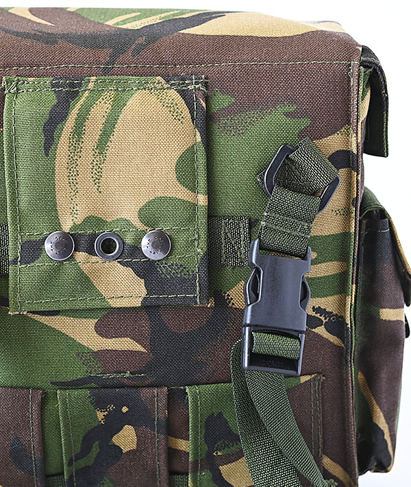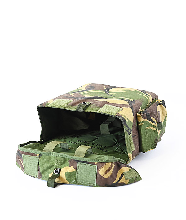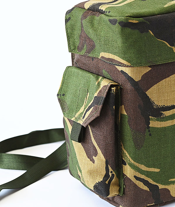UK militaryで使われていたハバーサックのデッドストック、2008年製と比較的新しい近代ミリタリー品です。イギリス軍独自のDPM(Disruptive Pattern Material)迷彩が施されたコーデュラの1000デニールナイロンを使用した、しっかりとした生地感が特徴のショルダーバッグです。一見するとシンプルなデザインですが、大きく開口するメインコンパートメントや各所に備えられたポケットやループなどミリタリーらしい機能的な作りになっています。