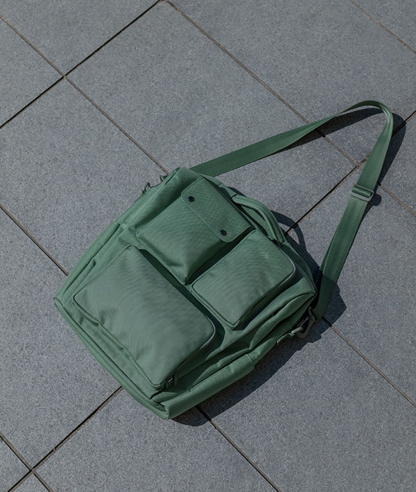肩掛けとハンドの 2wayで使用可能な、ユーティリティTOTE。フロントの複数のポケットや、使い勝手の良いコンパートメントの設計でオンオフ対応可能です。素材には1680デニールの中空糸を使用したバリスティックナイロン。横糸に長繊維(フィラメント糸)を使用することで光沢感をプラスし高密度に織り上げています。