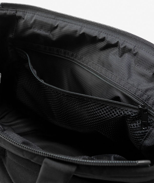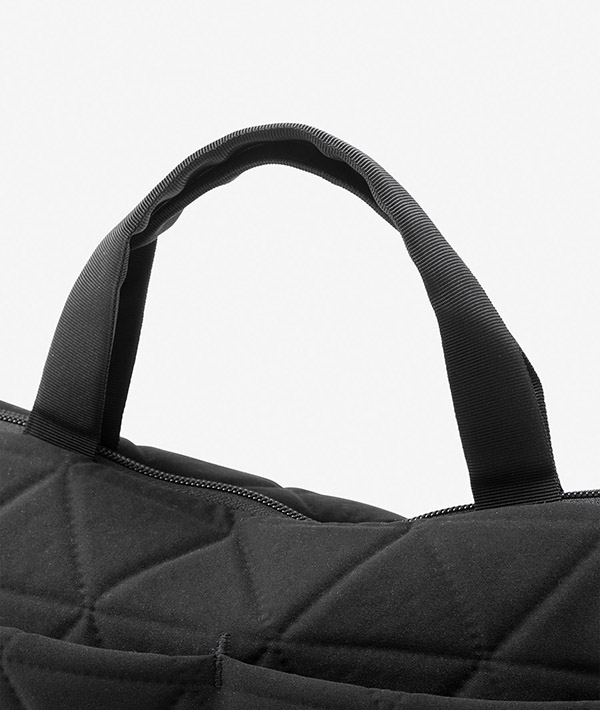 PCや書類、タブレット端末を収納しやすいクッション性を持たせたメインコンパートメントを備えた自立型のトートバッグです。オープンファスナーのメインコンパートメントは、13インチまでのノート型PCやA4サイズの書類の収納が可能。オン・オフともにシチュエーションを問わずに活躍するアイテムです。容量:7L