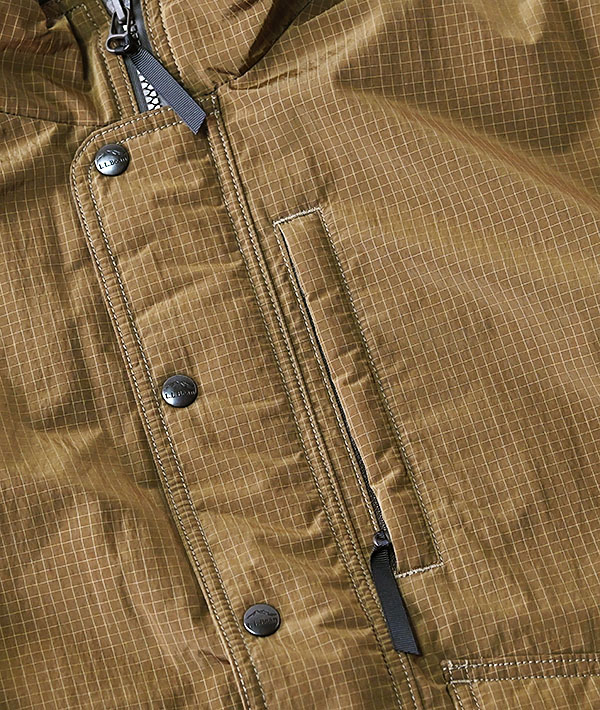 L.L.Bean JAPAN EDITION. 90年代初頭に生産されていたBean's windy ridge jacketをベースに現代的にアップデート。新登場のこちらの表地には撥水性と防風性に優れたDry Grid Nylon Ripstop 2 Layer Shell Nylonを使用。中綿にはTORAYの新素材「3DeFX+(スリーディーイーエフエックス)」を採用し優れた保温性と伸縮性を備えています。クラッシックなフォルムと最新技術が融合したストレスのない抜群の軽量感が特徴です。