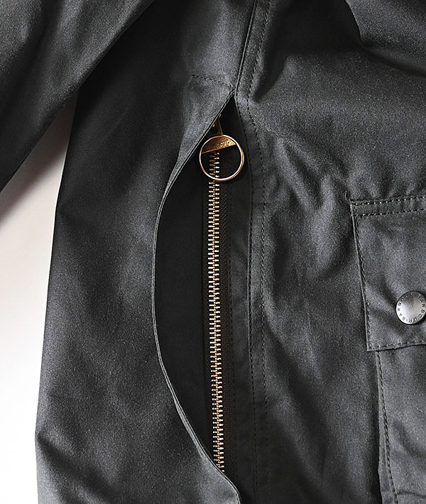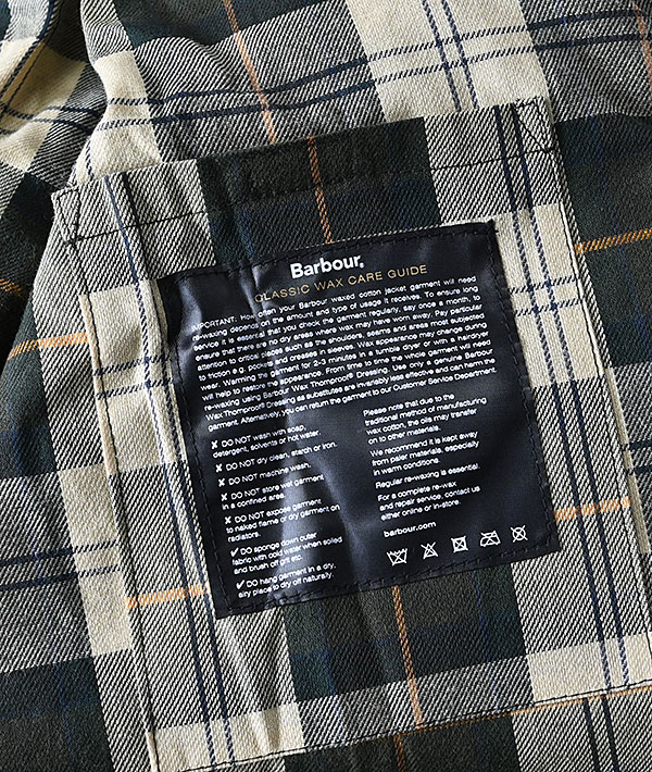 6オンスのソーンプルーフワックスコットンを使用。バブアーの代名詞的ファブリックであるワックスコットン。スタンダードな6オンスの生地は強度に優れており、なめらかで控えめな光沢感が特徴。匂いは無く、ベタ付きも極力抑えられております。