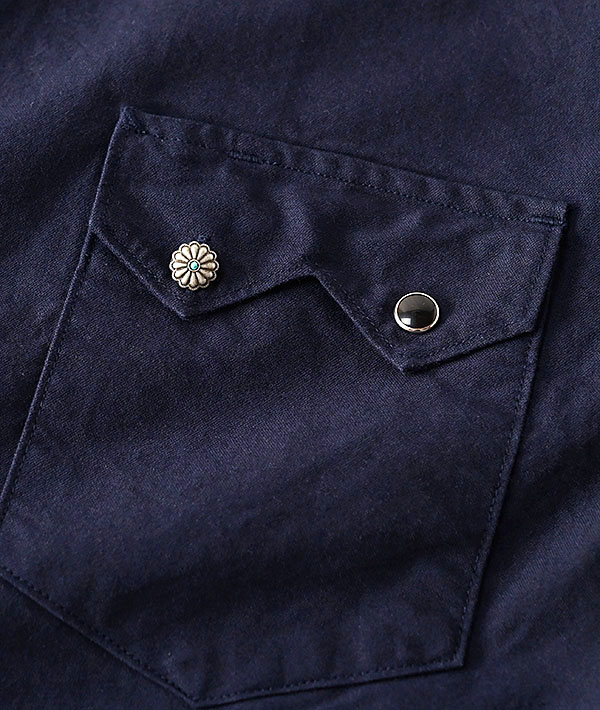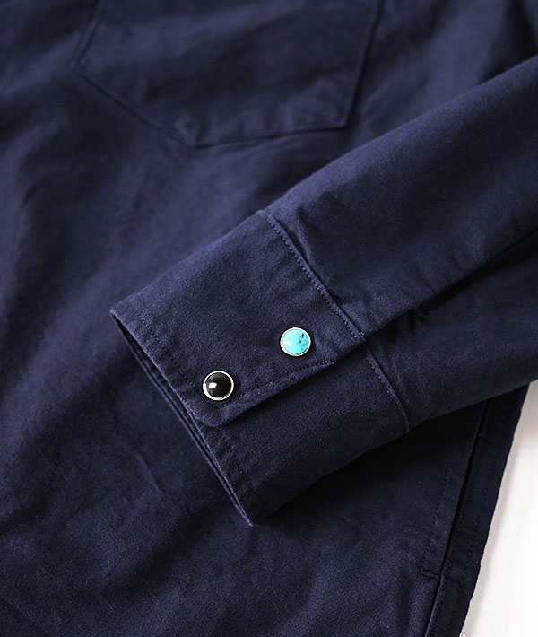 ウエスタンシャツをベースに、トラッカージャケットのようなウエストベルトやアジャスター、サイドポケットを組み合わせたジャケット感覚で着用いただけるシャツジャケットです。厚手でしっかりとした風合いのオックスフォード素材を使用。マルチカラーであしらわれたパールボタンやコンチョボタンがアクセントです。身幅はゆとりがありつつ、着丈は短くバランスを整えた様々なシルエットのボトムスと相性が良い一着です。