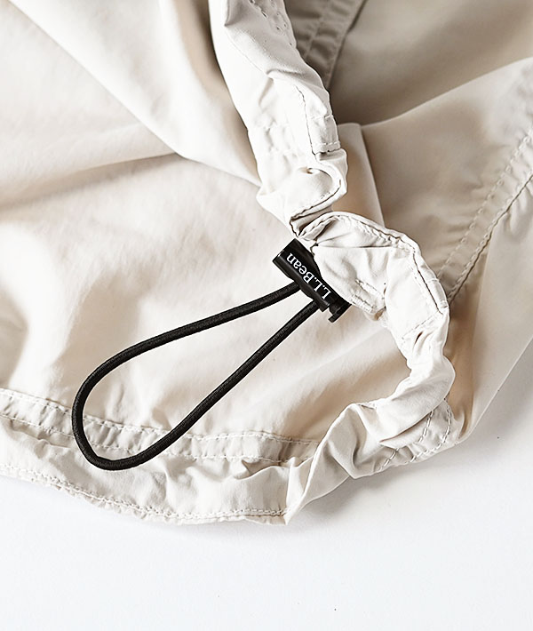 L.L.Bean JAPAN EDITION.1984年に初めて製作されたアノラックをベースに、程よく張りがありながらも非常に滑らかなタッチとマットな表情が特徴の日本製の高密度ナイロンタフタを使用し、程よくゆとりを持たせたサイズフィットにアップデート。素材には撥水加工を施しているので、軽い雨にも対応する機能性もポイント。胸のファスナーポケットに本体を全て収納できるポケッタブル仕様。裾のスピンドルコードを絞ってブラウジングも可能です。
