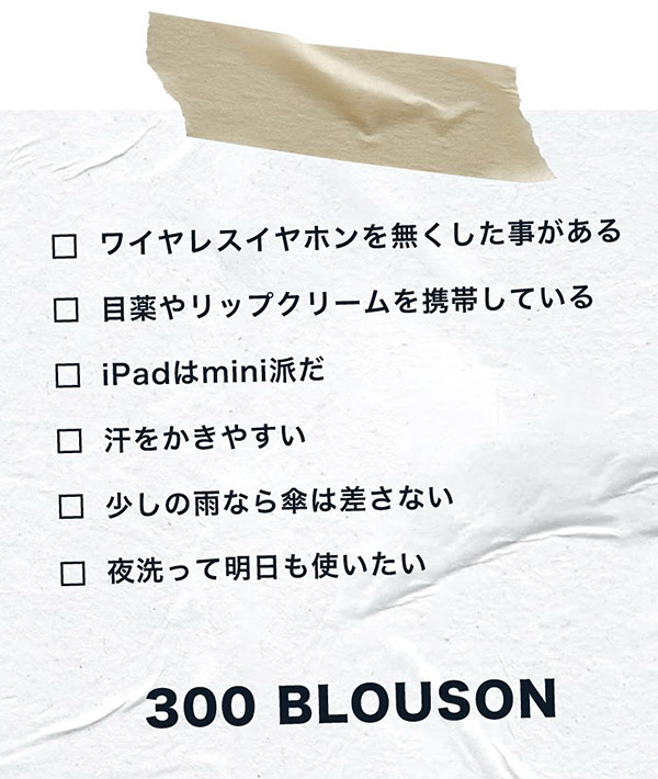 300ブルゾンは夏場以外の年300日着用を想定した、毎日使えるライトアウターです。