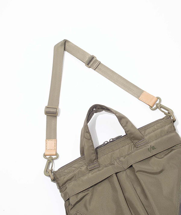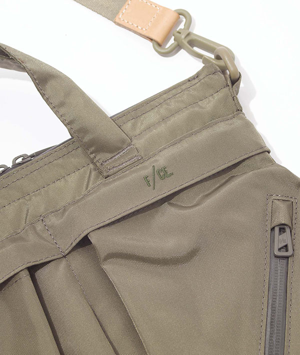 F/CEで定番的に展開されるヘルメットバッグのアップデートバージョン。定番の通常サイズより 50%のサイズ感で作成し、ポーチ的な仕様が可能なユニセックスモデルにフォーカス。