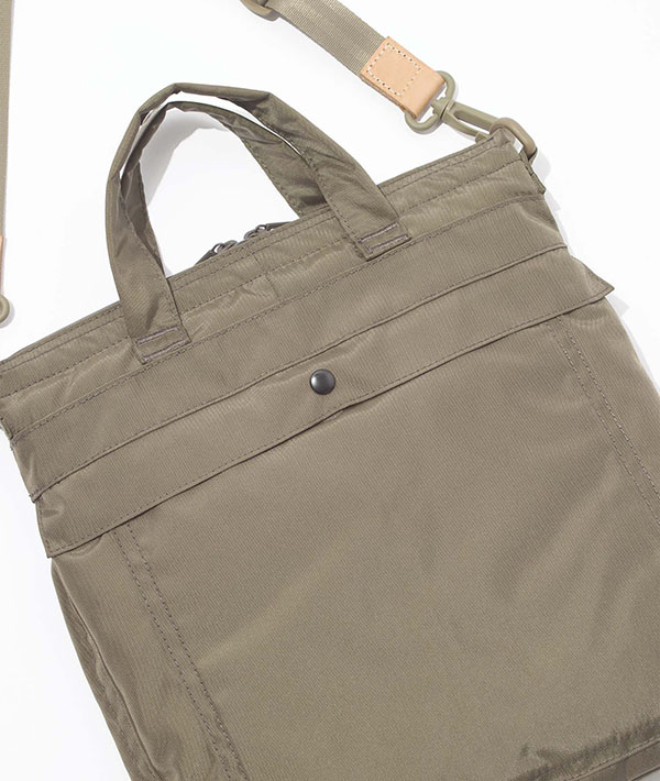 ヘルメットバッグとしての歴史としては第二次世界対戦の終わり間際に登場し、現在に至るまで幾度かのモデルが登場しています。オリジナルモデルをアップデートし、スモールサイズは、ショルダー、ハンドルの2wayの仕様で提案。マルチガジェットポケットを内装に装備。フロントのジッパーで、ポケット内に簡単にアクセス可能。