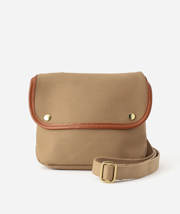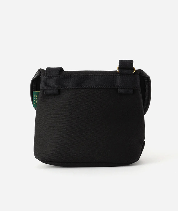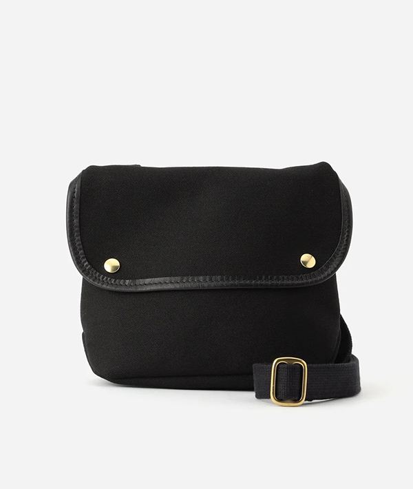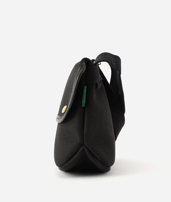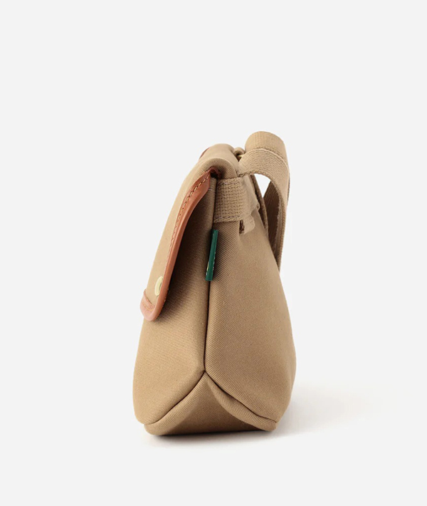 長さ調節可能なショルダーストラップにスナップボタンのみのシンプルなデザインです。