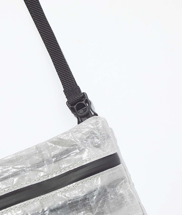 FCEの定番となるSACOCHEをDyneema素材で製作。ショルダーにはイージーアジャストシステムを採用。ショルダーストラップをはずして、FCE Back Packに取り付けられるMOUNTING T SYSTEMを搭載しています。