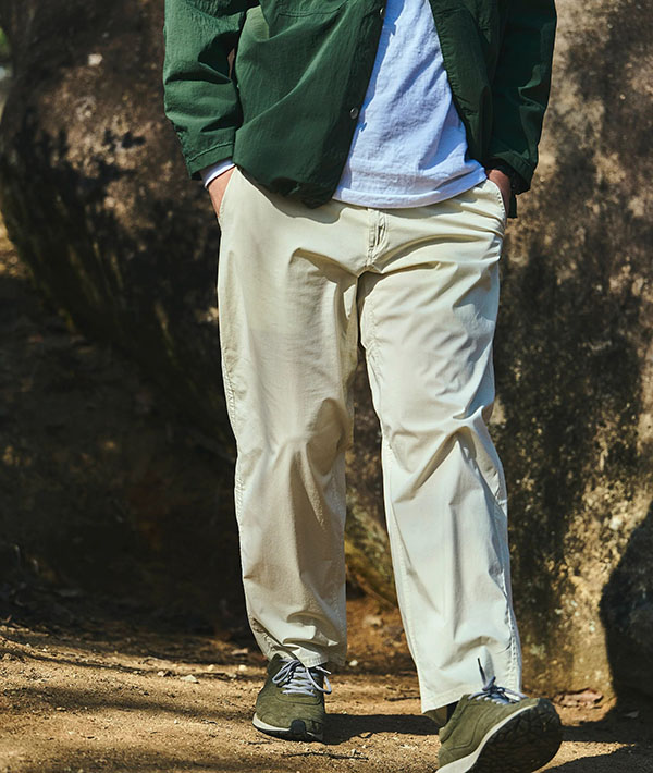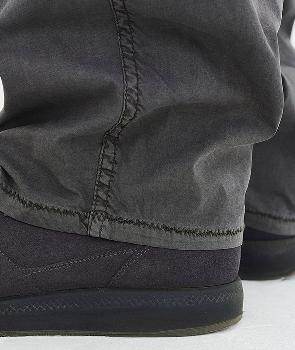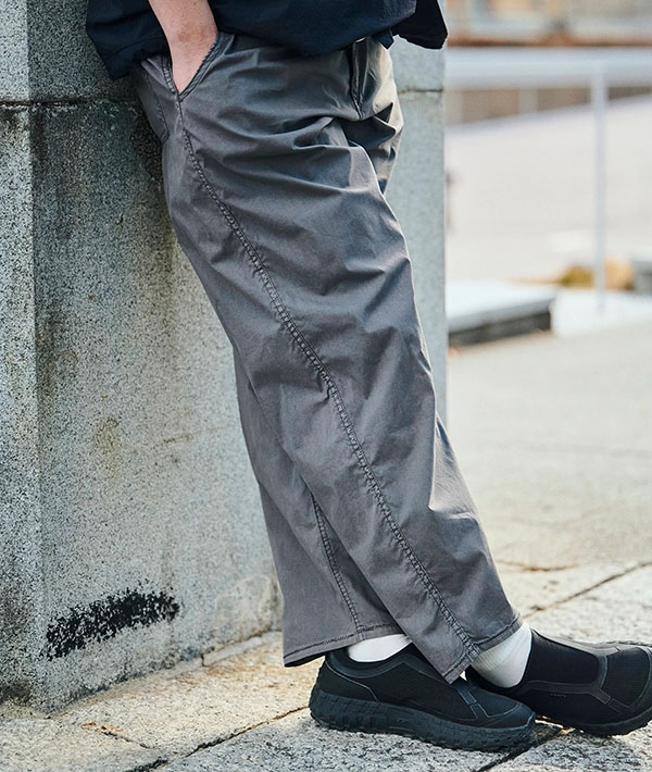 ストーンマスターのアイコン的定番アイテム「SM PANT HYBRID PIGMENT DYED」。ナイロンの持つ強度性と速乾性、そしてコットンの持つ風合いをミックスし、製品染めで仕上げたパンツ。薄くて軽量なパッカブル仕様。速乾性にも大変優れており、トラベルにも最適。夏場でも重宝します。ナイロンとコットンを混紡したハイブリット素材。そこにピグメント加工を施すことで、アタリとパッカリングのある表情豊かな顔つきに仕上げています。難しいとされるナイロンへのピグメント加工ですが、高い染色技術がそれを可能にしました。