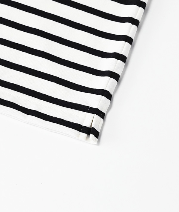 MORLAIXをベースとし、身幅と袖幅にゆとりをもたせた着心地のよいデザインです。リラックス感のある着心地が特徴。身ごろのサイドにスリットを施しています。
