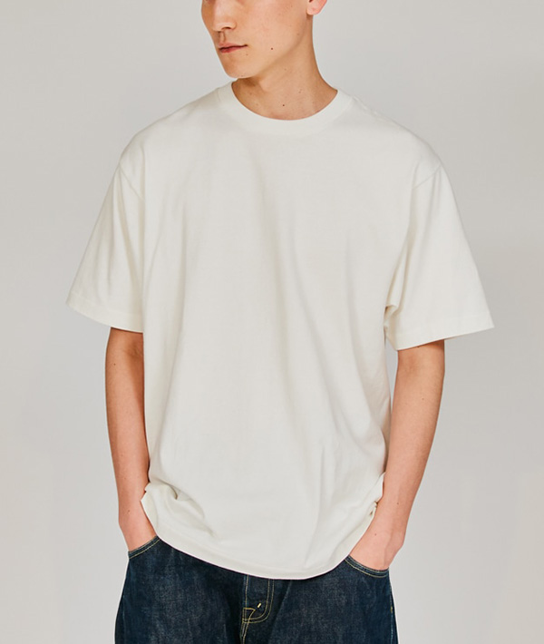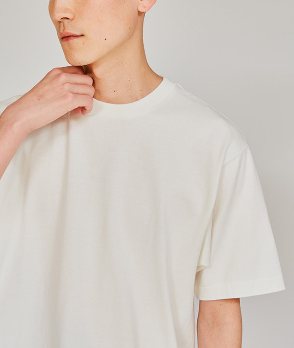 パックT のパイオニア、Hanesが提案する" Hanes T-SHIRTS SHIRO "。厚みと柔らかさを兼ね備えた7.0オンス。カラー展開は独自製法で生み出したこだわりの白です。特徴的なラウンド形状のクルーネック。身幅と袖幅にゆとりを持たせたアメリカンスタイルのシルエット。脇に縫い目のない丸胴編みによるストレスフリーの着心地。首元にネームデザインを身生地同色でプリントするTAGLESS仕様で襟ネームの肌当たりを解消し快適な着心地です。袖と裾部分にはクリーンな印象を与えるブラインドステッチを採用。
