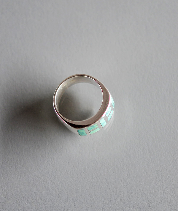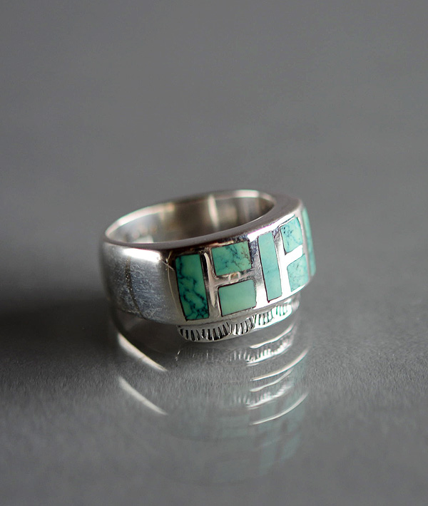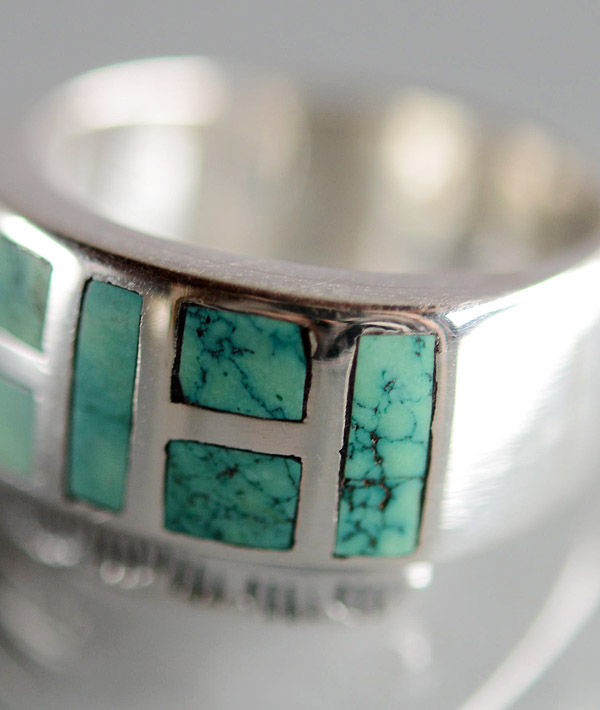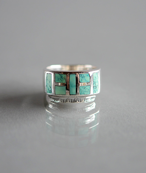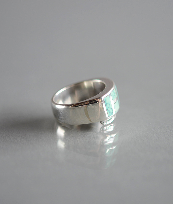 インレイ技法を用いて一つ一つハンドメイドで仕上げた、ターコイズストーンリングです。