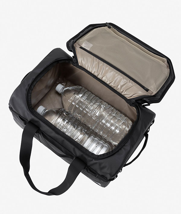 500mlペットボトルを立てた状態で15本まで収納できるサイズ。2Lのペットボトルも寝かせた状態で収納可能です。開口部はD字型に大きく開いて収納しやすく、ファスナーからの冷気漏れを軽減するフォームチューブを備えています。トップにある本体内部へのアクセスファスナーで、取りたいものをスムーズに取り出せます。サイドポケットや小物を連結できるデイジーチェーン、フラップ裏にファスナー付きポケットなど、収納性も多彩。