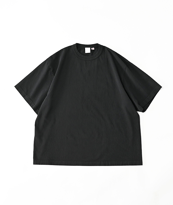 Heavy Weightな7.5oz生地を使用した" BREA "は、クラシックな太めのバインダーネックと見頃左右に縫い目のない丸胴仕様。生地には綿の綿毛をあえて整えず紡績したオープンエンド糸を使っており、洗い上げると独特のボリューム感と生地表面に凹凸が出るドライタッチな肌触りのTシャツになっています。頑丈な上、繊維の中に空気を多く含むため吸湿性や速乾性に優れています。少し肩が落ちるショルダーラインとヘビーオンス特有のボックスシルエットもアメリカ製らしい作りとなっています。生地のハリ感があるので、体にまとわり難く暑い夏にも1枚で最適に着ていただけます。