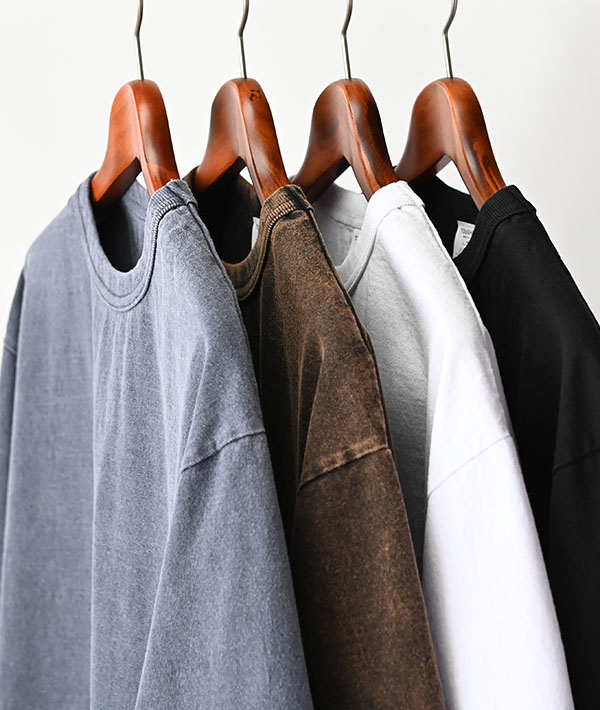 ※オープンエンド糸を使い旧編み機で編みたてているため、綿毛の処理をしない糸の特性から線のような編みムラが入ることがございます。製造過程の味として予めご了承ください。