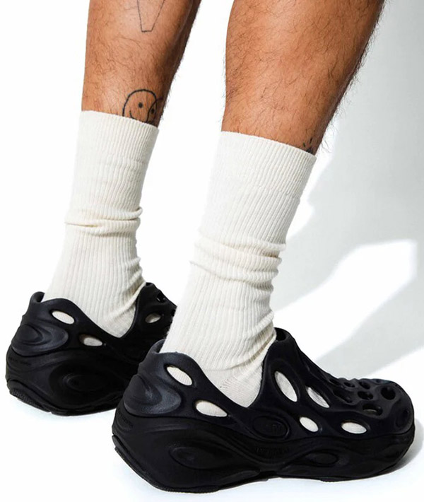 アッパー素材に藻類バイオマスから生成されたサステナブル素材BLOOMフォームを採用し、また新たに改良されたヒール構造によりスムーズな着脱を可能にしました。さらにクッション性の高いFLOATMAXフォームミッドソールにより快適性が向上。接地面には、トラクション性と耐久性を向上させるラバーアウトソールを搭載することで、全地形対応型のHYDRO MOCが誕生しました。
