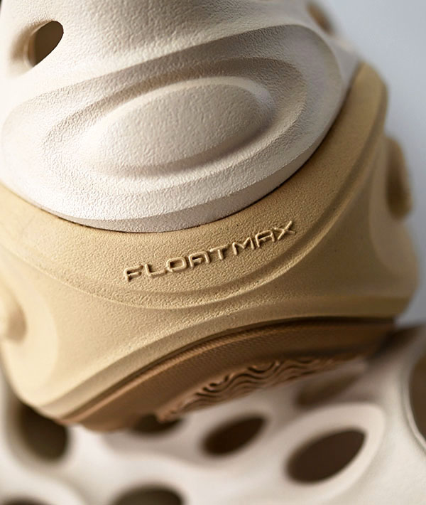 アッパー素材に藻類バイオマスから生成されたサステナブル素材BLOOMフォームを採用し、また新たに改良されたヒール構造によりスムーズな着脱を可能にしました。さらにクッション性の高いFLOATMAXフォームミッドソールにより快適性が向上。接地面には、トラクション性と耐久性を向上させるラバーアウトソールを搭載することで、全地形対応型のHYDRO MOCが誕生しました。