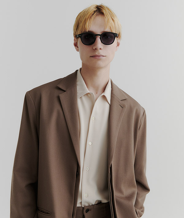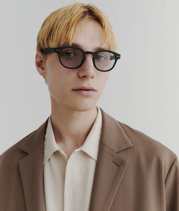 #Cはボストンフレームとウェリントンフレームの良いところを融合させたフレーム。クラシックなボストンと顔なじみの良いウェリントンが合わさり、新鮮な魅力が生まれます。比較的どんな輪郭でも合う形なので、フレーム選びに悩まれている方におすすめです。また、フレームが太めに作られているため、マットフレームの滑らかな質感や、色柄がきちんと表現されているのが特徴的です。