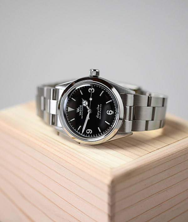 VAGUE WATCH Co.では初めてとなる日本製のこの時計は1950年代に某有名時計メーカーが探検家のために開発したモデルを参考に製作。モチーフとなったモデルは世界中で広く愛される時計であり、この時計も多くの方々にご愛用いただきたいという思いを込めて“ Every-One (エヴリィワン) " と名付けられています。