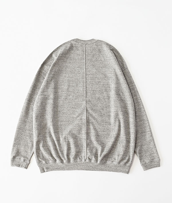 既存のストレッチフライスとは一線を画した地厚なストレッチフライス生地を新たに作成。従来のフライスと同じ素材で糸の太さを30番手から20番手にしてセミシルケット加工を施すことで厚みを持ちながらさらりとした肌触りと適度な光沢で、カジュアルながらも上品な素材感が特徴です。後身頃の中心で切り返しを施すことでゆとりのあるラインを生み、裾リブにより全体的に丸みのあるシルエットを作り出してくれます。