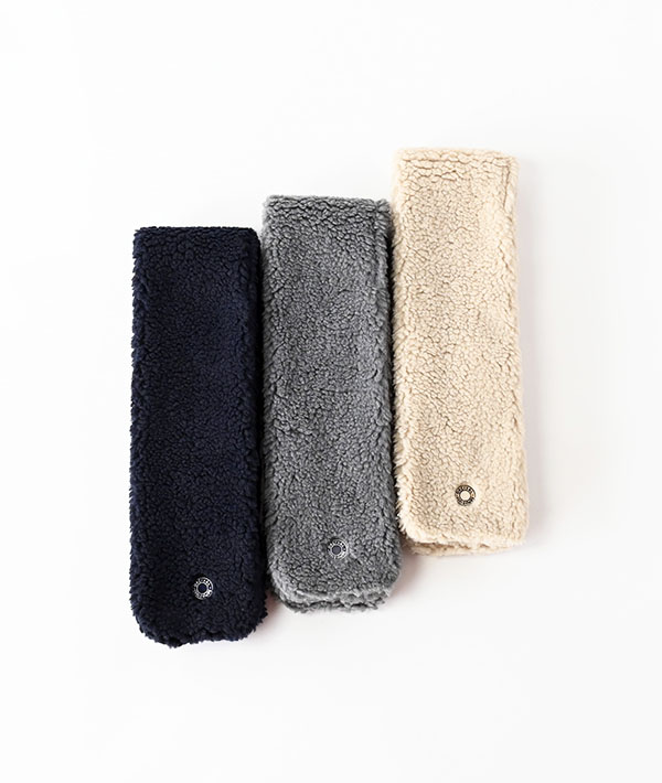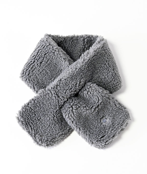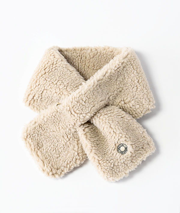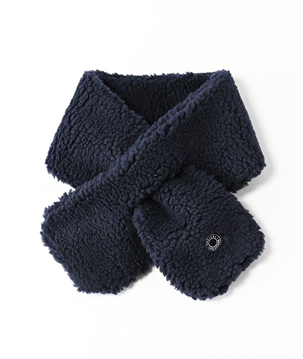 ソフトな風合いのボリュームのある一巻きのボアフリースマフラー。通し穴にマフラーの片側を差し込むだけでウォーム感ある首元に。ウールがミックスされた柔らかく膨らみのある質感であたたかな心地良い着用感です。ブランドアイコンのロゴ刺繍が施されています。