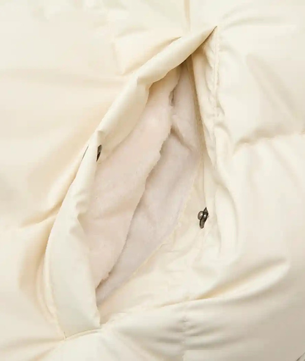 素材: 表地 100%ポリエステル(内側ポリウレタンコーティング)・ダウン 90%ダウン 10%フェザー 600フィルパワー フレンチダックダウン