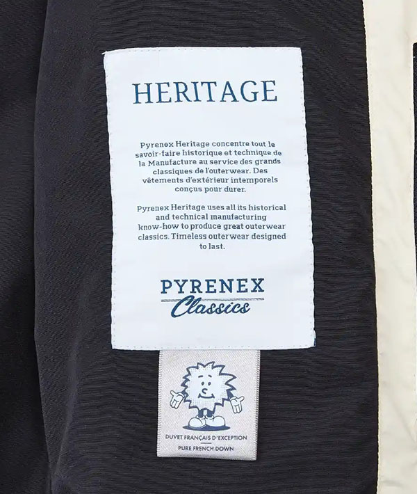 サン・セベはフォアグラの産地として欧州では有名な地域で、創業当時から食用として処理された羽毛を用い、掛け布団や枕などの寝具類の生産を続けています。 ピレネー山脈の麓という厳しい気象条件で育ったダックからピッキングされたダウンは非常に高いフィリングパワーをもち、保温性の高い世界最高峰のダウンが生まれます。1960年代にシュラフなどのキャンプ用品をはじめとする本格的なアパレル製品の生産を始めたピレネックスは、OEM メーカーとして様々なブランドとタッグを組み、物づくりのノウハウを蓄積。同時に世界の名だたるダウンブランドへ高品質なダウンの供給元としても名声を高めていきます。1990年代から「PYRENEX」の名を冠したブランドをスタートします。 現在はパリの直営店や百貨店、セレクトショップにコーナーを展開する、フランスを代表するダウンブランドへと大きく発展しました。世界的にも珍しい、ダウンの原毛から製品まで一貫生産する世界最古のダウンメーカーです。