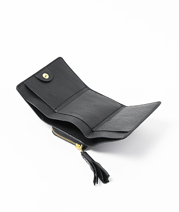 手のひらより小さいサイズ感のポケットサイズのお財布です。スペースを余すことなく収納スペースとすることで見た目よりもゆったりとお使いいただけるデザインとなっています。見た目に反して触り心地は柔らか。そして軽い。育てていくお財布となります。