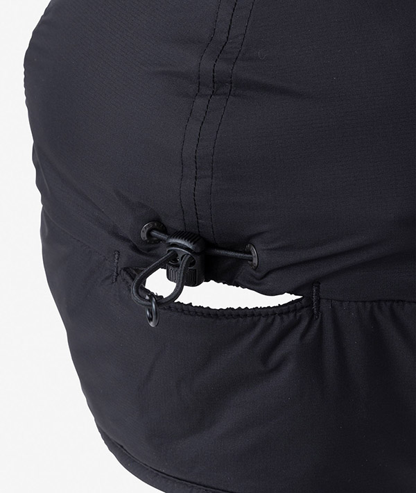 ウィンターシーンに活躍する耳当て付きのインサレーションキャップです。表地には、撥水性を備えたPERTEX QUANTUM PRO ECOを採用。本体裏地にはマイクロフリースを配し、耳当て部に化繊の中わたを封入し、適度な保温性を確保しています。立体的なデザインの耳当ては、留め具を使うことなく立ち上げることが可能です。