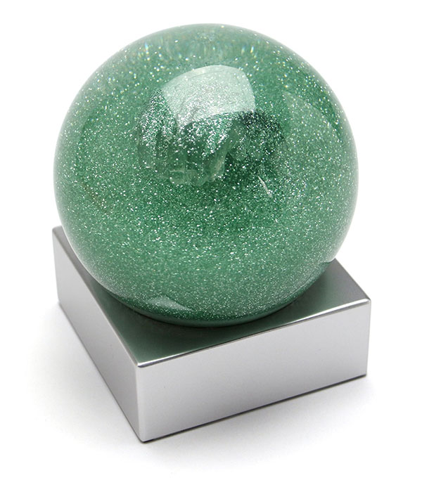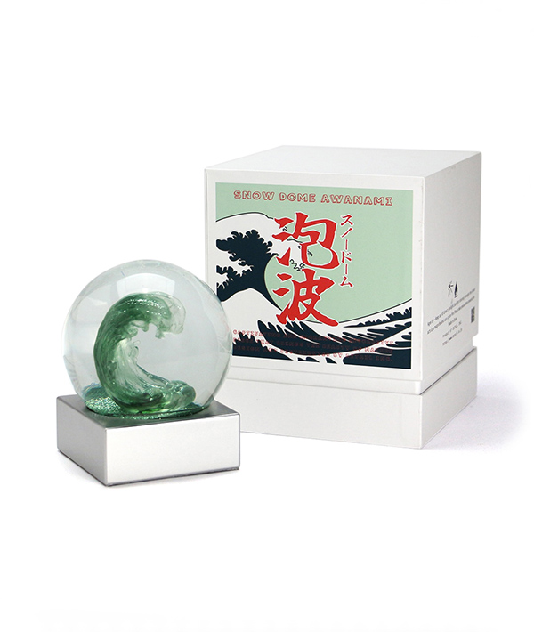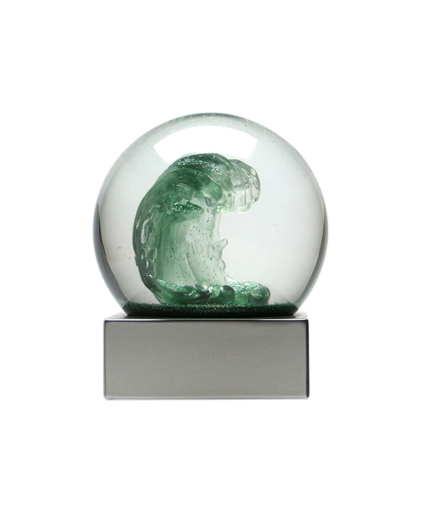 荒々しい波を10cmの球体のスノードームで表現したアワナミ。 細かなラメパウダーが球体の中で舞う幻想的な様子はつい見入ってしまいます。