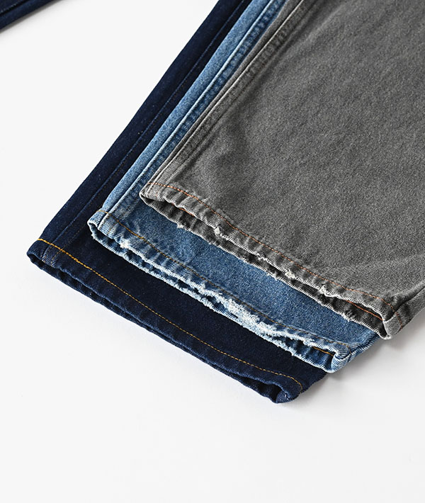 日本の気候やトレンドに合わせ、日本のデザインチームが開発したJAPAN EDITION。90年代のアーカイブジーンズをデザインベースに、Hidden Comfort Waist(ウエスト両脇に目立たないゴムパネルを内蔵)などのディテールは踏襲しつつ、シルエットを現代的にアップデートしました。深めの股上とゆとりのあるヒップから、裾に向かって緩やかにテーパードしたシルエットは、モダンなルックスと快適な履き心地を両立。GreyとBlueカラーにはビンテージジーンズのような製品加工を施し、長年履き込んだような表情に仕上げています。