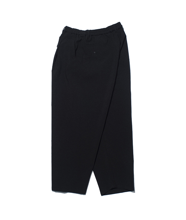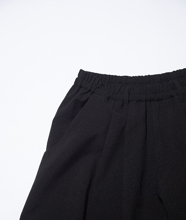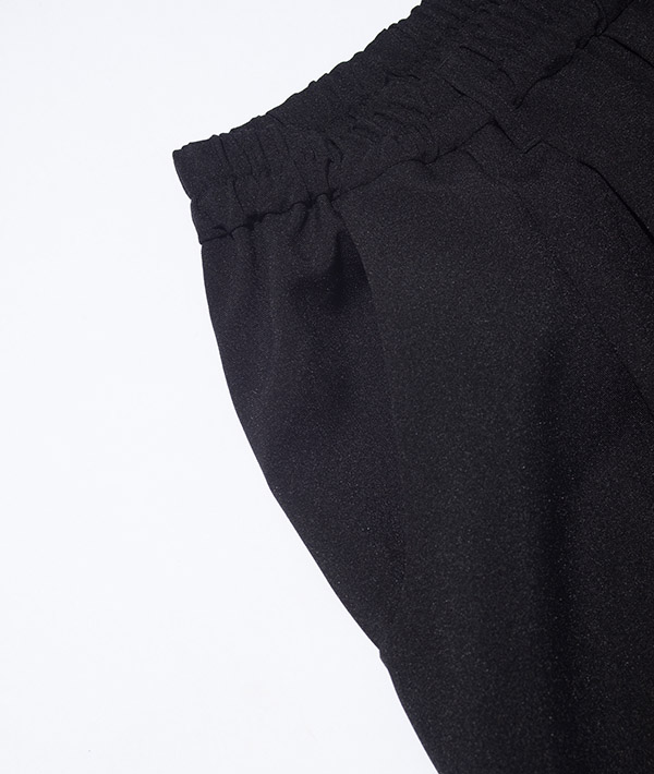 後ろポケットは大容量の設計で、デザイン性と機能性を両立。ウエストはゴム仕様にアップデートされ、イージーウェアとしての快適さがさらに向上しました。脇ハギを排した構造により、自然な落ち感と美しいドレープが生まれます。