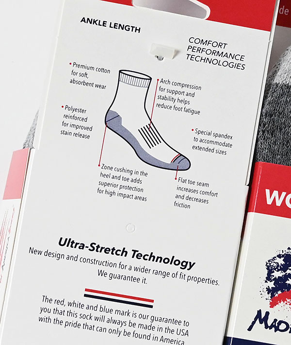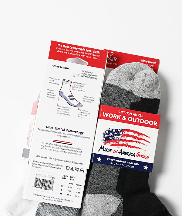 MADE IN AMERICA SOCKS COTTON ULTRA STRETCH ANKLE 2PAIR SOCKS