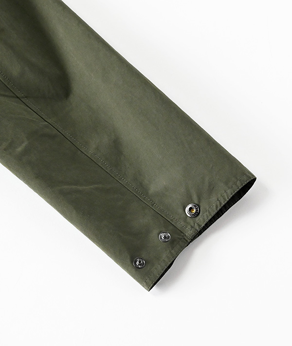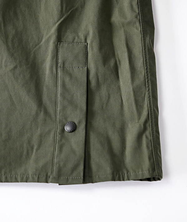 「ビデイル」のディティールはそのままに、ピーチスキン素材を使用したノンワックスのオーバーサイズジャケットです。コーデュロイの衿はチンストラップを備えており、衿を立てた時もしっかりホールドしてくれます。ハンドウォーマーポケットとベローズポケット付きで、ジップとスナップボタンを備えたフロントデザインです。バックベント、スナップボタンで調節可能な袖口など細かなディティールにも注目です。