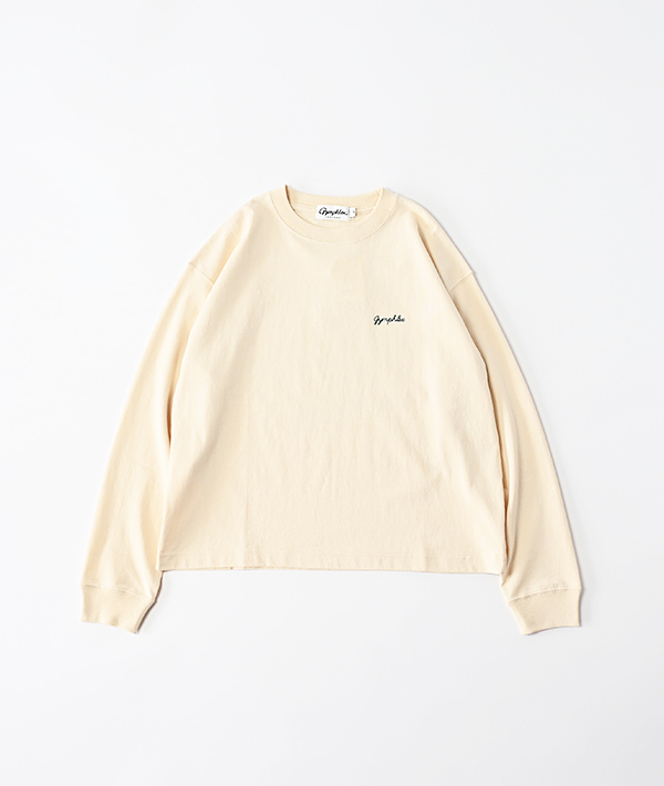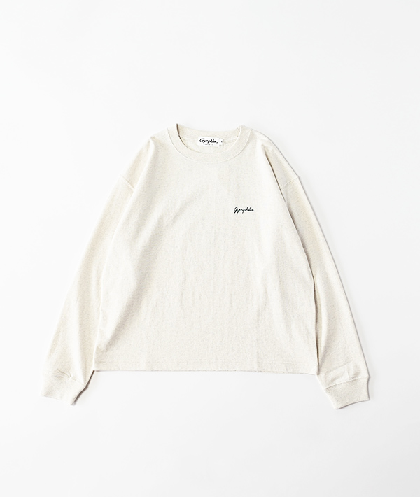 袖口の膨らみが特徴のゆったりシルエットのクルーネック長袖Tシャツ。肩を落としすぎないデザインでカジュアル感を抑え、配色ロゴ刺繍入り。ミドルウェイトの米綿コットン天竺を使用し、適度な厚みとドライな肌触りが特徴。