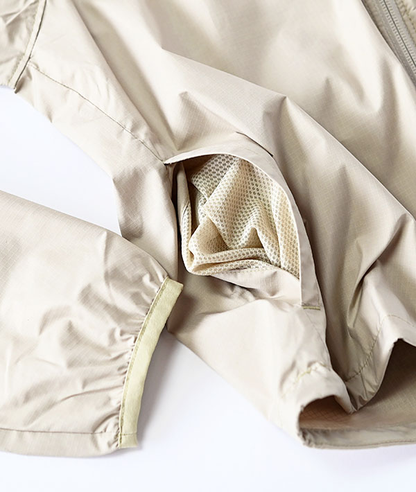 リサイクルポリエステル100%を使用した軽量な防風ウインドブレーカー。ゆったりしたフィットでレイヤリングしやすく、軽い悪天候から身を守る。ジャケット本体は左胸のジッパーポケットにコンパクトに収納でき、携帯にも便利。フードやドローコード付きの裾、動きやすいスリーブ設計により快適性と防風性を高めており、フェアトレード認証工場で製造されています。