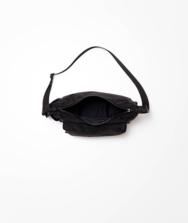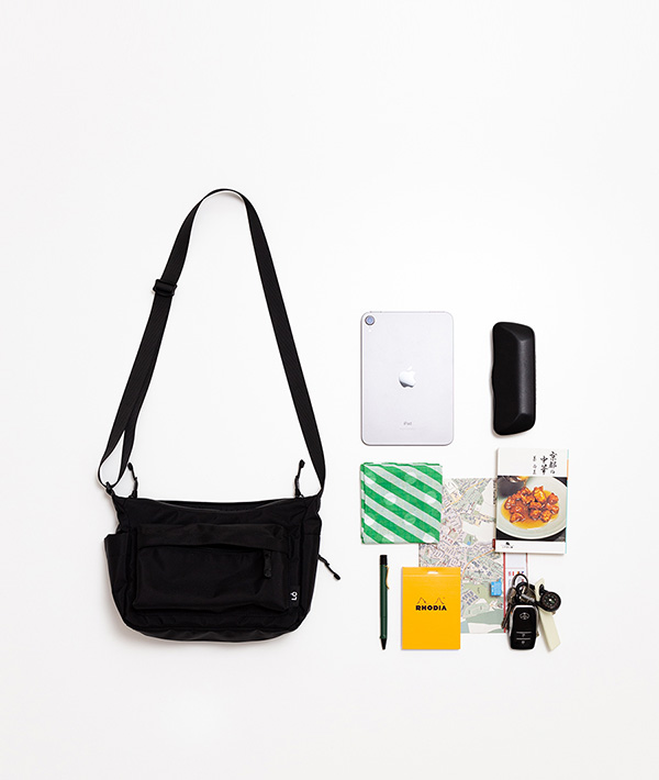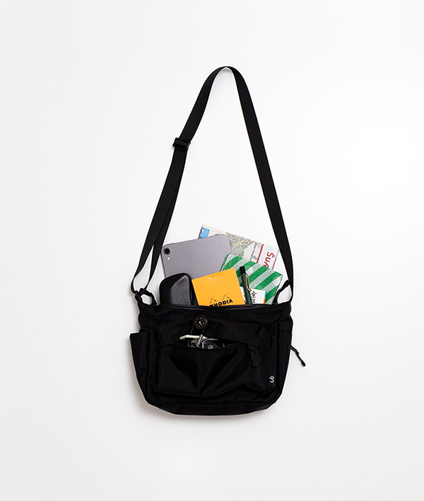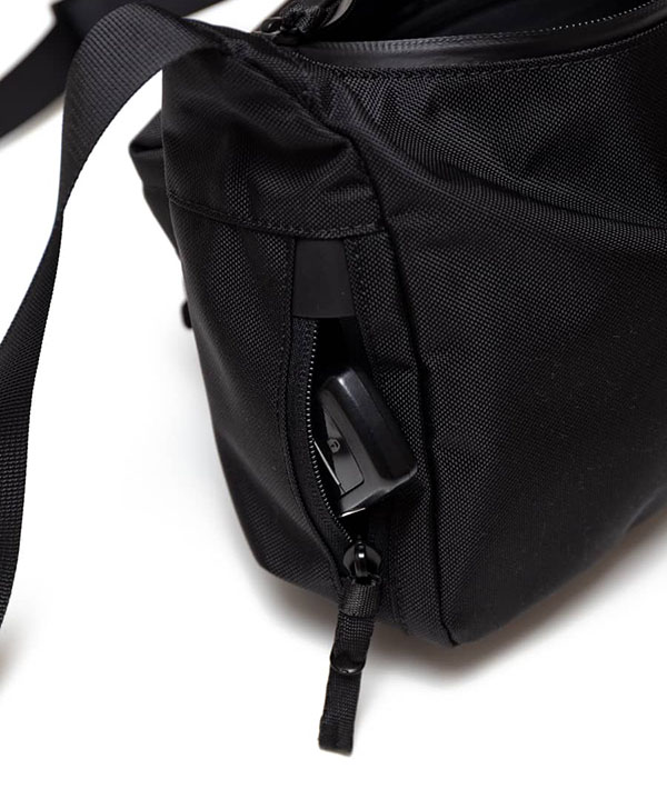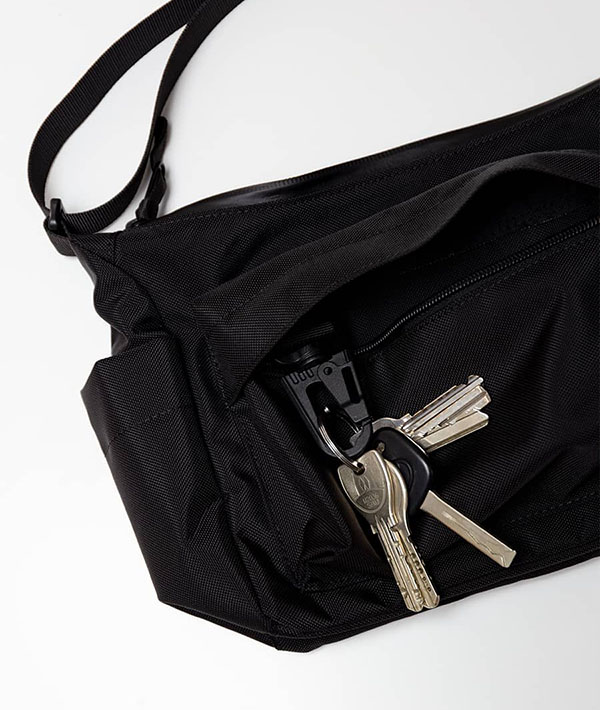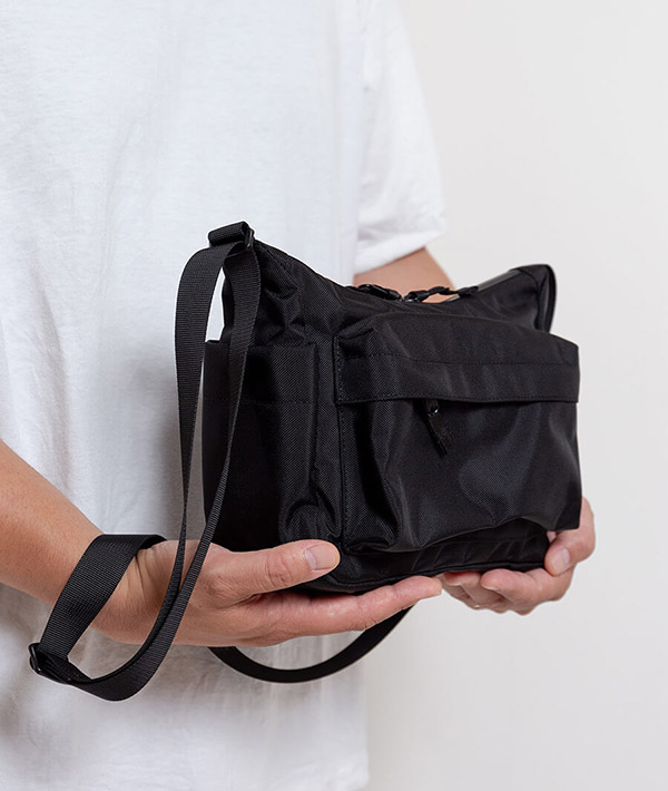 新作のショルダーバッグ Sサイズ。1stシーズンでリリースされたバックパックと同じ繊細かつ今日的な印象を与える840デニールのジュニア・バリスティックを採用。剛健ながらビジネスシーンにもカジュアルスタイルにも合うベーシックでシンプルなルッキングを継承。さらに機能面でもインナーオーガナイザーの仕様は前作から継承したディテールで展開する。