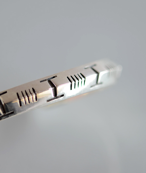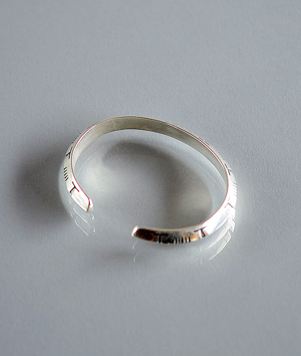 <コンティニュースHトライアングルブレスレット>。Hの刻印が印象的なシンプルなバングルです。